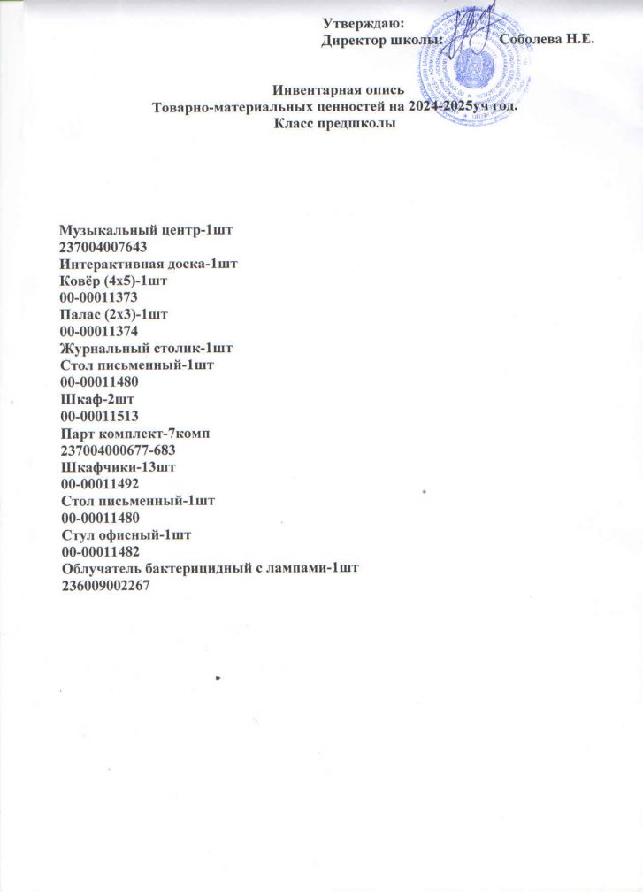 2024-2025 оқу жылына арналған тауарлық-материалдық құндылықтардың түгендеу тізімдемесі. Мектепке дейінгі сынып
