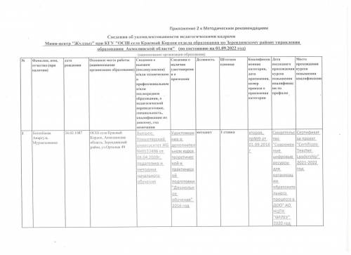 2022-2023 жылдарға арналған "Жұлдыз" шағын-орталығының педагогикалық кадрлармен жасақталуы туралы мәліметтер