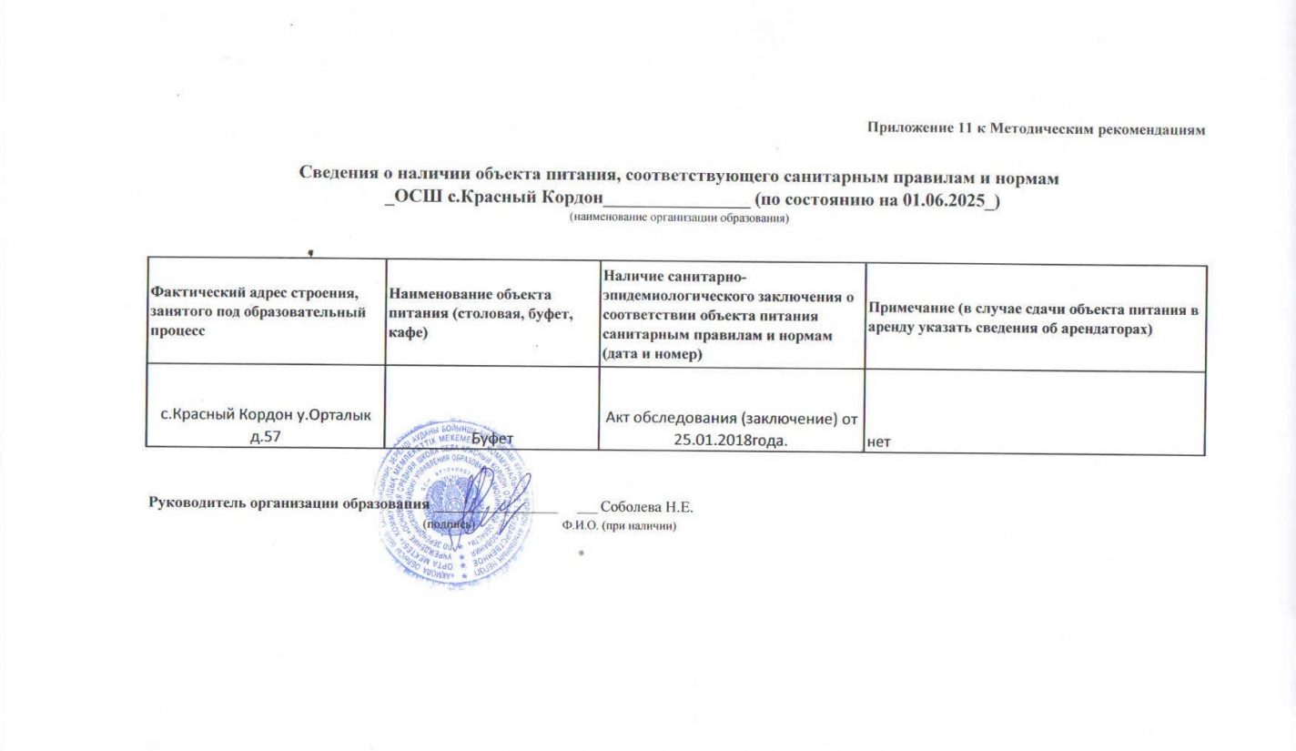 Санитариялық қағидалар мен нормаларға сәйкес келетін тамақтану объектісінің болуы туралы мәліметтер (01.06.2025 жылғы жағдай бойынша)