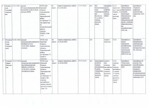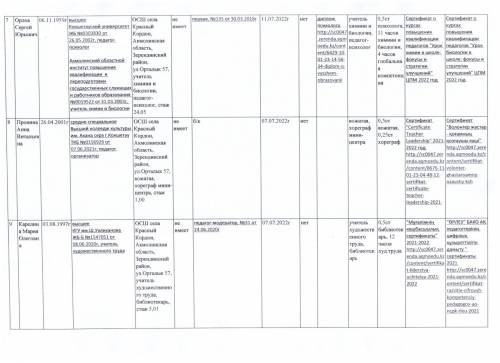 2022 жылға арналған" Красный Кордон ауылының НОМ " КММ педагогикалық кадрлармен жасақталуы туралы мәліметтер