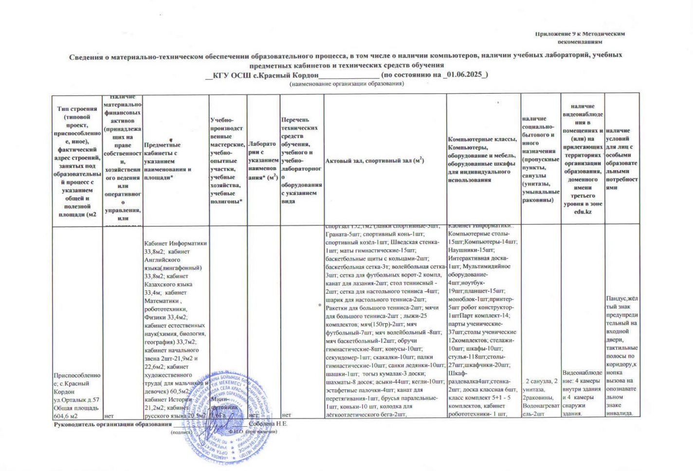 Білім беру процесін материалдық-техникалық қамтамасыз ету туралы, оның ішінде компьютерлердің болуы, оқу зертханаларының, оқу пәндік кабинеттерінің және оқытудың техникалық құралдарының болуы туралы мәліметтер ( 01.06.2025 ж. жағдай бойынша)