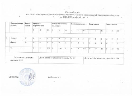 2021-2022 оқу жылына арналған мектепалды топ балаларының дағдыларын дамыту бойынша қорытынды мониторингтің жиынтық есебі