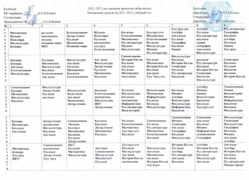 2021-2022 оқу жылына арналған кесте