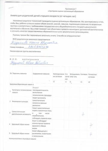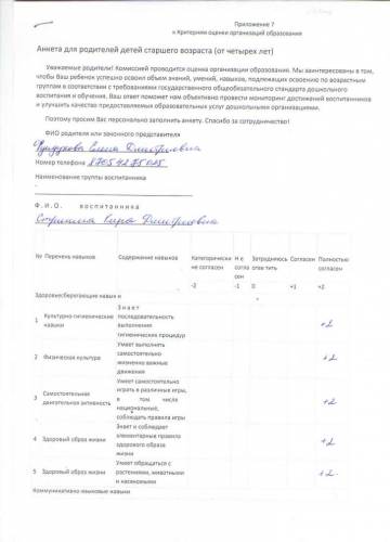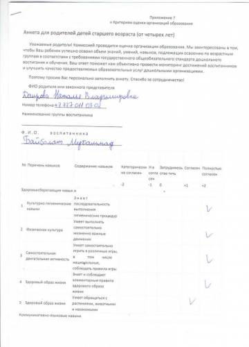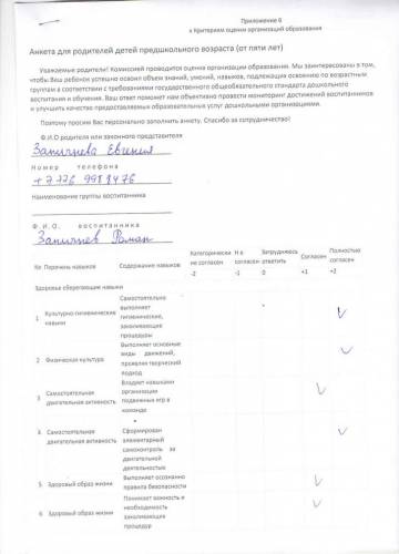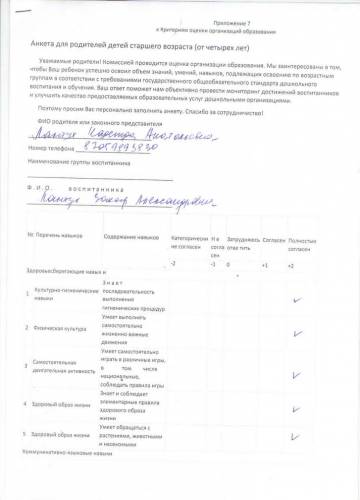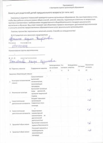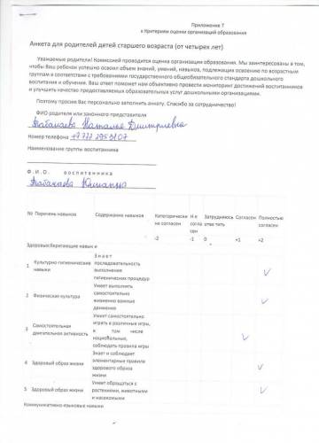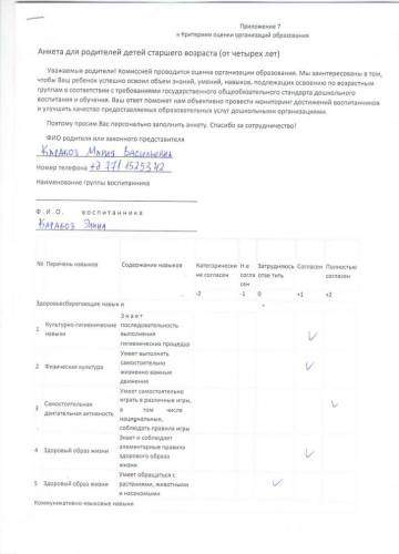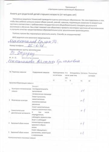 Ата-аналардың сауалнамалары