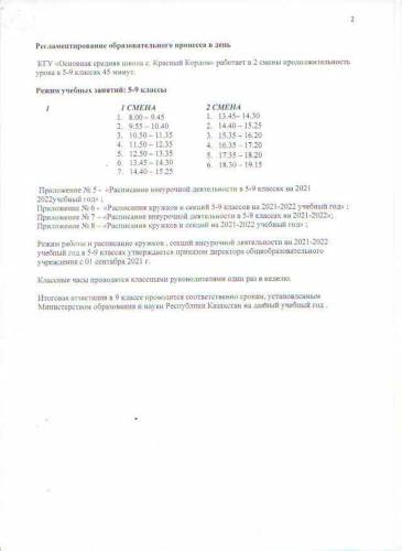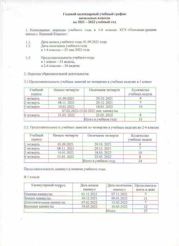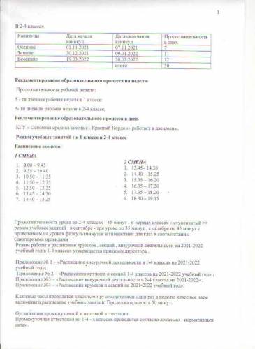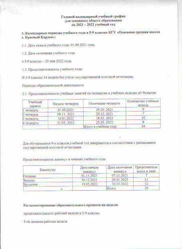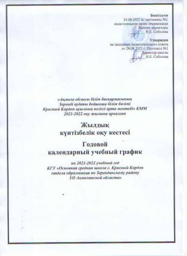 2021-2022 оқу жылына арналған жылдық күнтізбелік оқу кестесі
