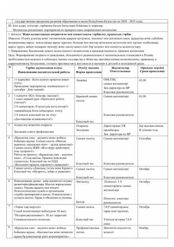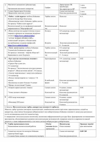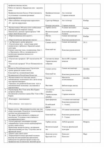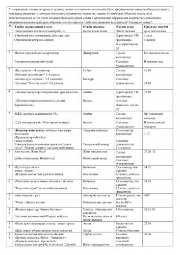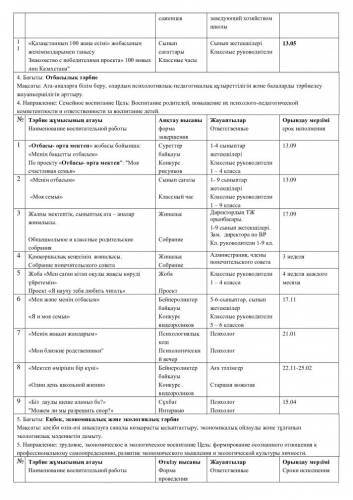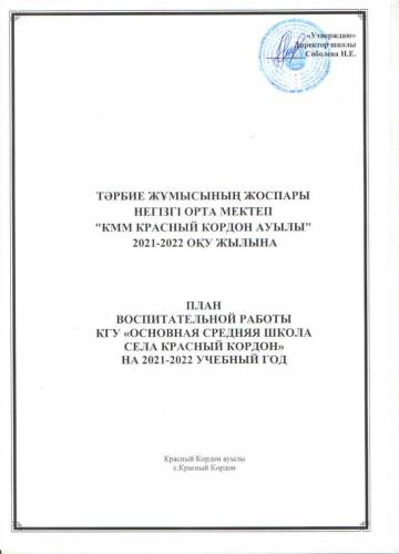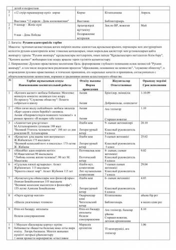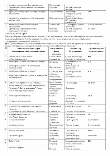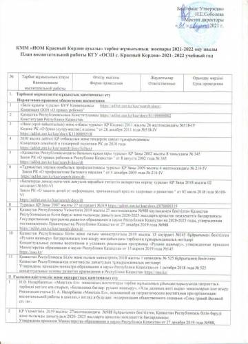 Тәрбие жұмысының жылдық Жоспары 2021-2022 оқу жылы