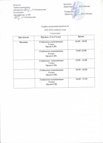 2022-2023 оқу жылына арналған үйірмелер өткізу кестесі (1 жартыжылдық)