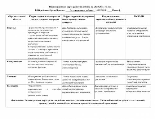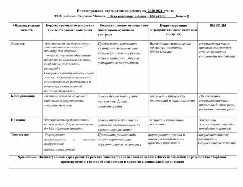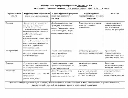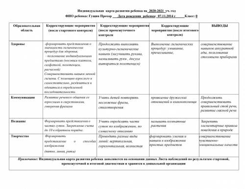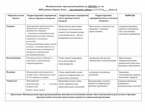2020-2021 оқу жылына арналған балаларды дамытудың жеке карталары