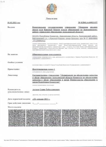 Коммунальное государственное учреждение «Основная средняя школа села Красный Кордон отдела образования по Зерендинскому району управления образования Акмолинской области»