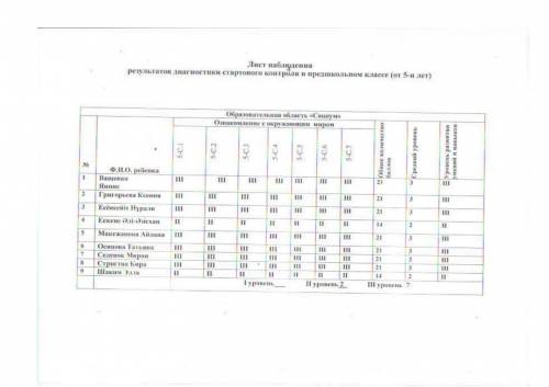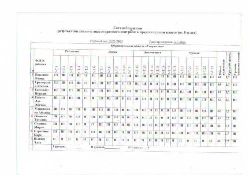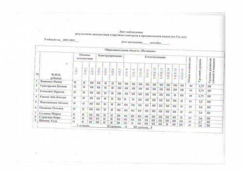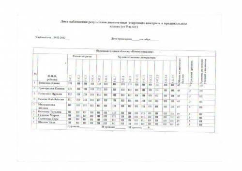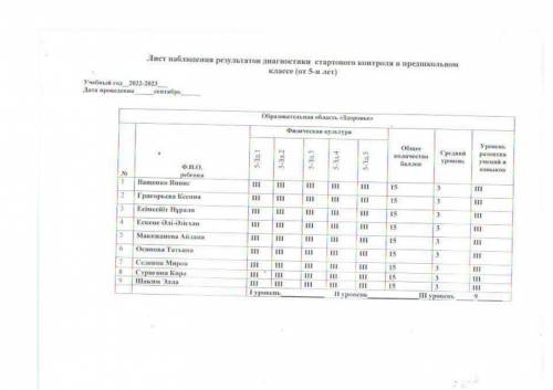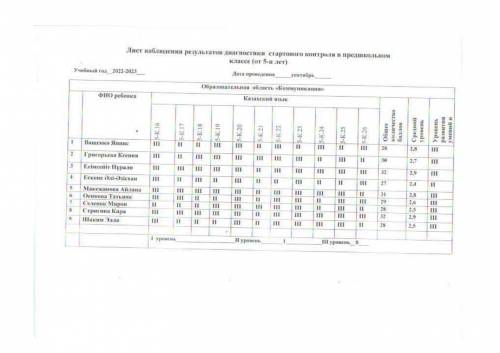 Мектепалды сыныптағы бастапқы бақылау диагностикасының нәтижелерін бақылау парақтары 22-23