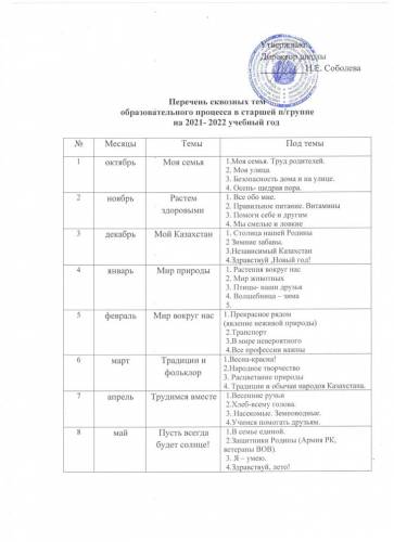 2021-2022 оқу жылына арналған аға топтағы оқу процесінің өтпелі тақырыптарының тізімі