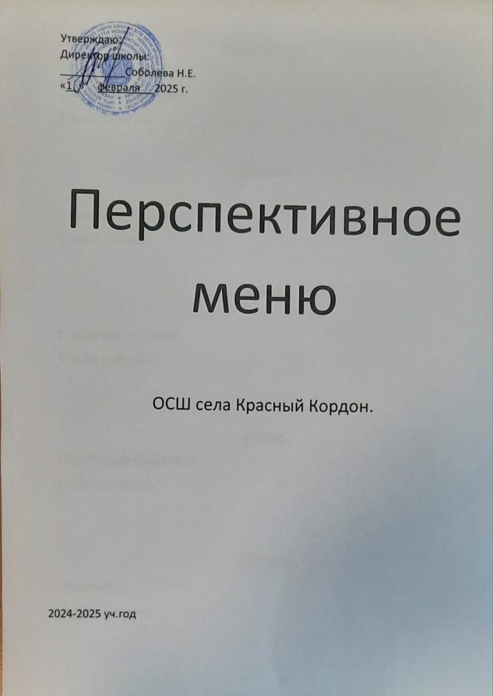 2024-2025 оқу жылына арналған "Красный Кордон ауылының НОМ " КММ перспективалық мәзірі