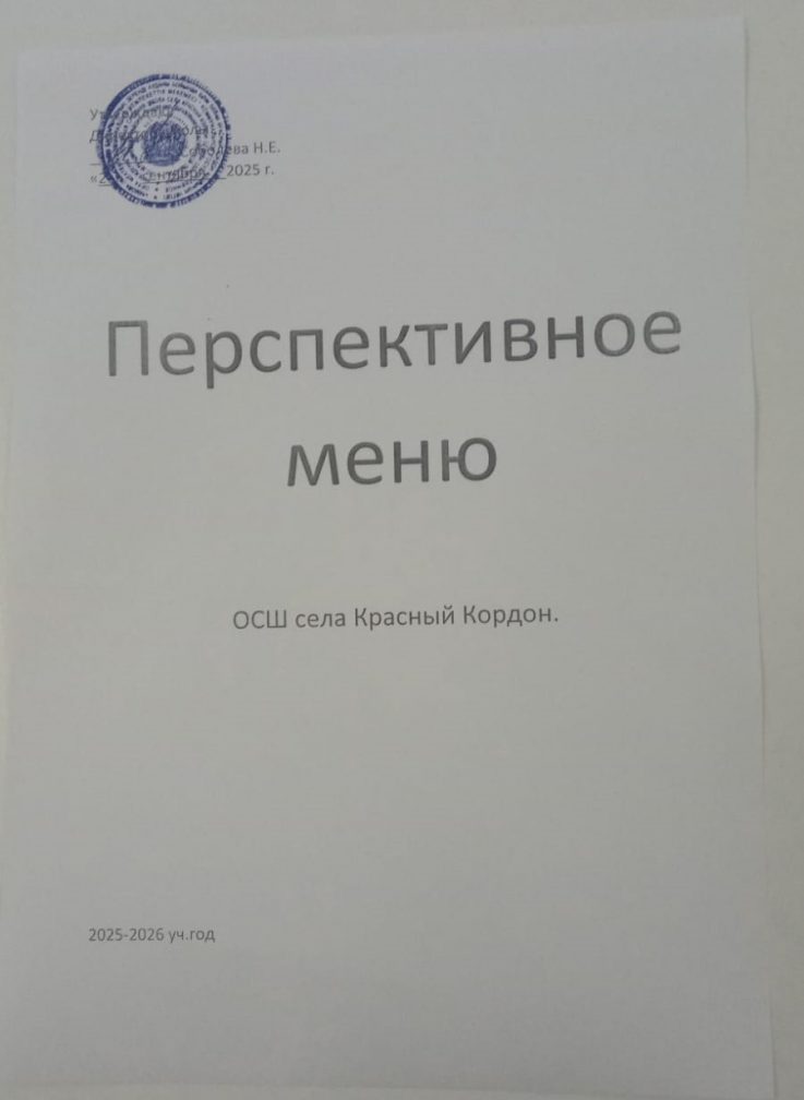 2025-2026 оқу жылына арналған мектептің перспективалық мәзірі