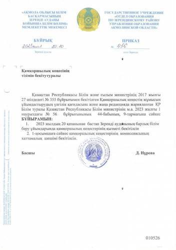 2023 жылға арналған Қамқоршылық кеңестің құрамы туралы бұйрық
