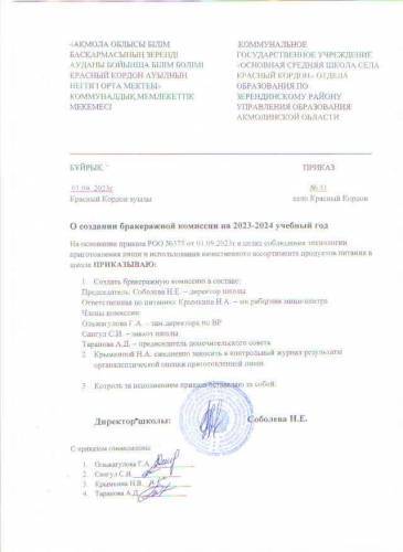 2023-2024 оқу жылына бракераж комиссиясын құру туралы бұйрық