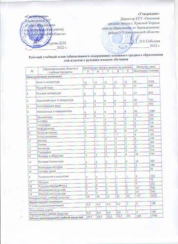 2022-2023 оқу жылына арналған оқу жұмыс жоспары (ОЖЖ)