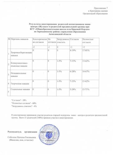 Шағын орталық тәрбиеленушілерінің сауалнамасының нәтижелері