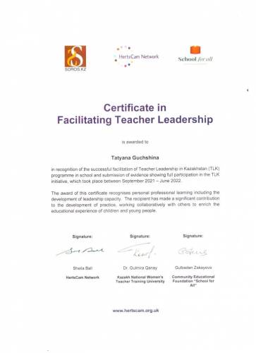 Сертификат "Certificate TeacherLeadership" 2021-2022 жыл