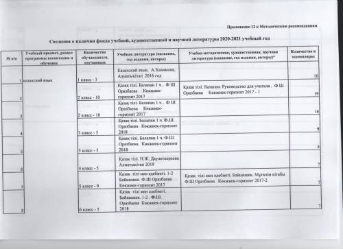 Оқу, көркем және ғылыми әдебиет қорының болуы туралы мәліметтер 2020-2021 оқу жылы