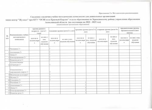 Мектепке дейінгі ұйымдар үшін оқу-әдістемелік кешендердің болуы туралы мәліметтер (2022-2023 жыл)