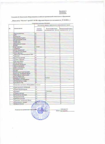 Мектепке дейінгі білім беру ұйымдарын жабдықтармен және жиһазбен қамтамасыз ету туралы мәліметтер, 2021 жылға арналған "Жұлдыз" шағын орталығы