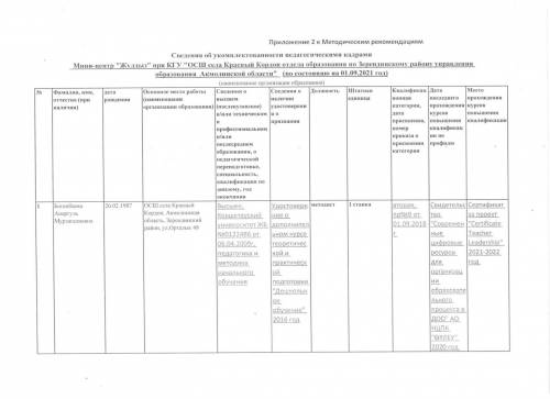 2021-2022 жылдарға арналған "Жұлдыз" шағын-орталығының педагогикалық кадрлармен жасақталуы туралы мәліметтер