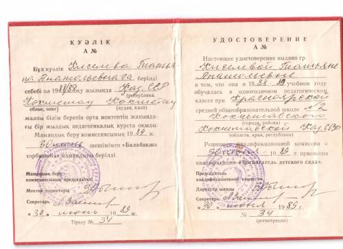 Бір жылдық педагогикалық сыныпта оқу куәлігі