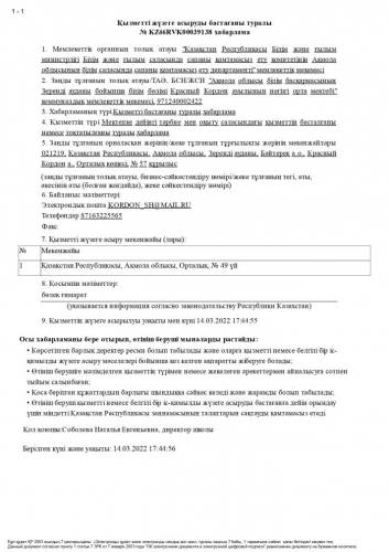 Қызметті жүзеге асырудың басталуы туралы хабарлама