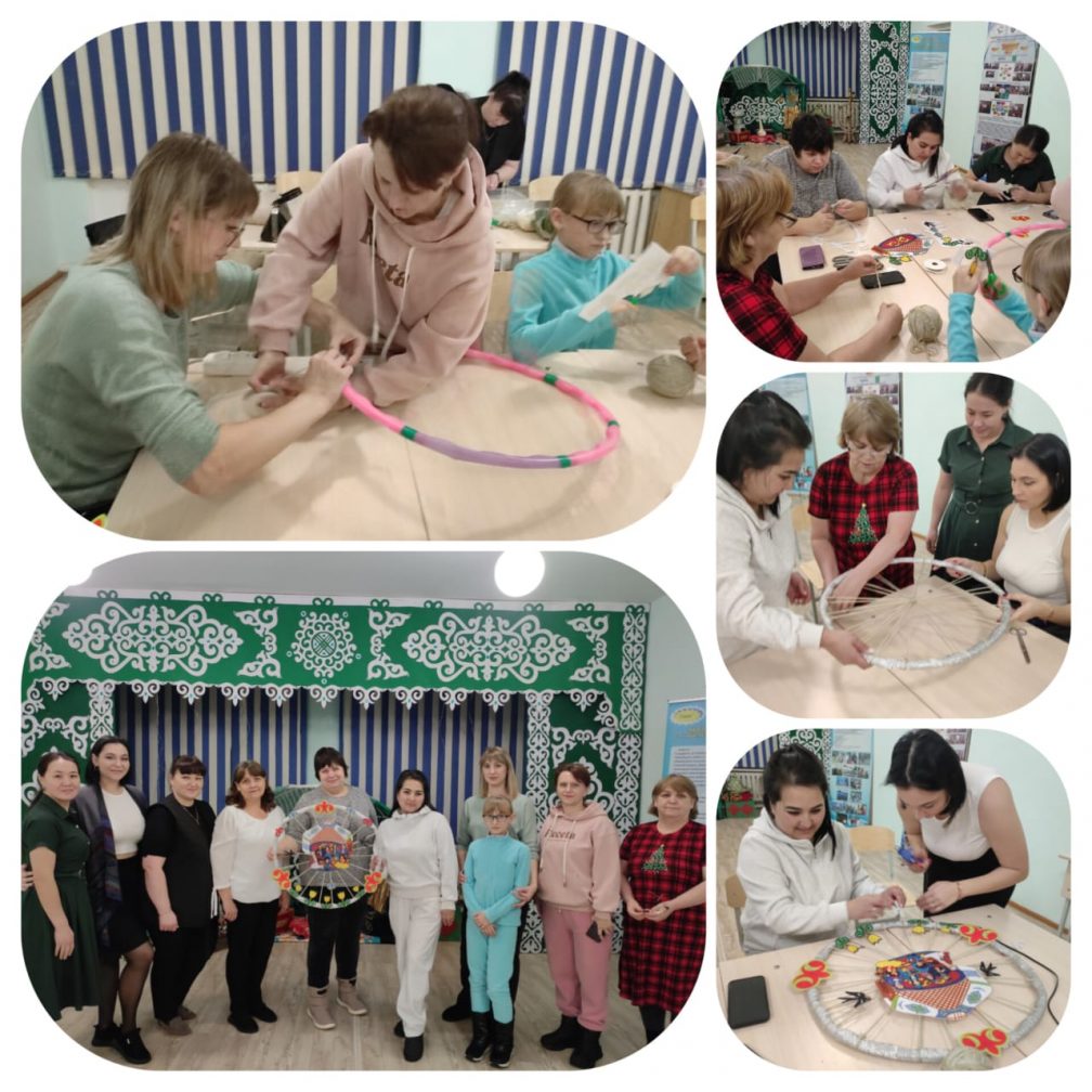"Біртұтас тәрбие" бағдарламасын іске асыру аясында "әжелер мектебі" және "аналар мектебі" жобалар бойынша жұмыс жоспарына сәйкес "этнокруг құру"мастер-класс өткізілді # аналардың мектебі # Әжелер мектебі