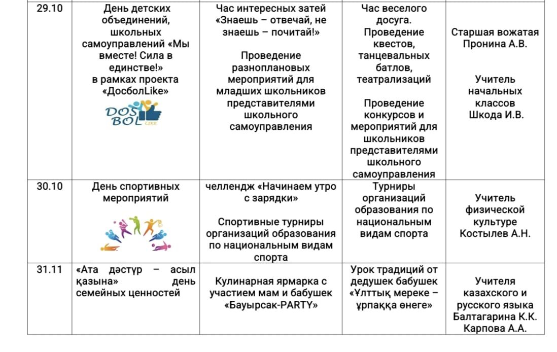 Ақмола облысының білім беру ұйымдары үшін күзгі демалысқа арналған іс-шаралар жоспары (27 қазан-2 қараша)
